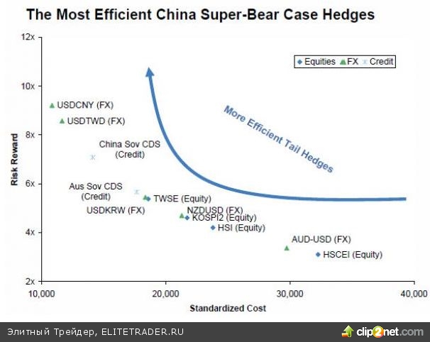 Собственно, эксперты MS уже сейчас рекомендуют закладывать риски "тяжелой посадки" в Китае в свои инвестиционные стратегии. Вероятней всего, политика по снижению уровня сомнительных кредитов в банках Китая будет развиваться на отрезке ближайших 6-12 месяцев, что, по прогнозам MS, может запросто снизить темпы роста ВВП Китая второй половины 2013 года до 5.5% (и 4.5% в 2014 году). При этом регуляторам Китая, вероятней всего, не удастся гладко и быстро успокоить финансовые рынки, которые непременно начнут реагировать повышенной волатильностью, которая перекинется на все рынки мира. Эксперты Morgan Stanely оценивают риск "тяжелой посадки" (исполнения "супер-медвежьего сценария") как 1 к 10. При этом фондовые рынки пострадают сильнее рынка Форекс.