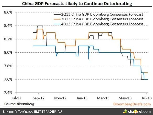 Консенсус-прогнозы по динамике роста ВВП Китая от независимых аналитиков все время понижаются: