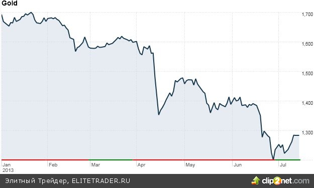 Цены на золото достигли своего максимума в 2011 году - $1900, однако с начала этого года котировки просели на 24%, так как инвесторы опасаются за планы ФРС сократить программы стимулирования. В этом случае золото теряет свое преимущество как инструмент борьбы с инфляцией. Однако на прошлой неделе Федрезерв приободрил инвесторов, заявив, что не будет спешить с exit strategy. На этом фоне золото может показать отскок. CNN