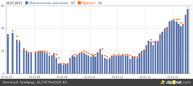 При этом индекс деловой активности на рынке жилья в июле достиг рекордных 57 пунктов.