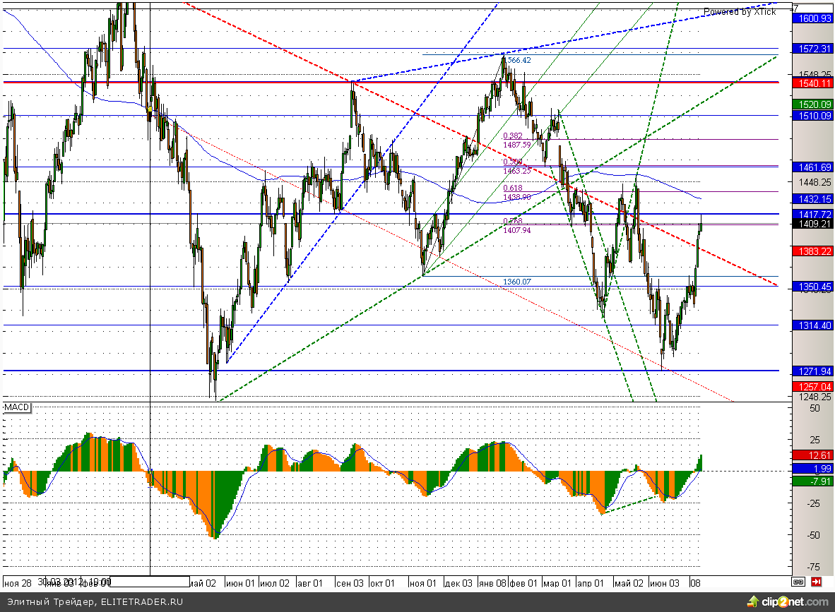 Российский рынок завершил торговую сессию вторника на положительной территории. «Быки» сегодня отчаянно пытались преодолеть отметку 1410 по ММВБ, но сильного роста пока не получилось. Шансы на коррекцию растут с каждым днем и возможно, уже завтра мы увидим снижение фондовых активов. Впрочем, предпосылок для этого пока крайне мало. Поэтому рекомендую без видимых причин не принимать участия в коррекции.