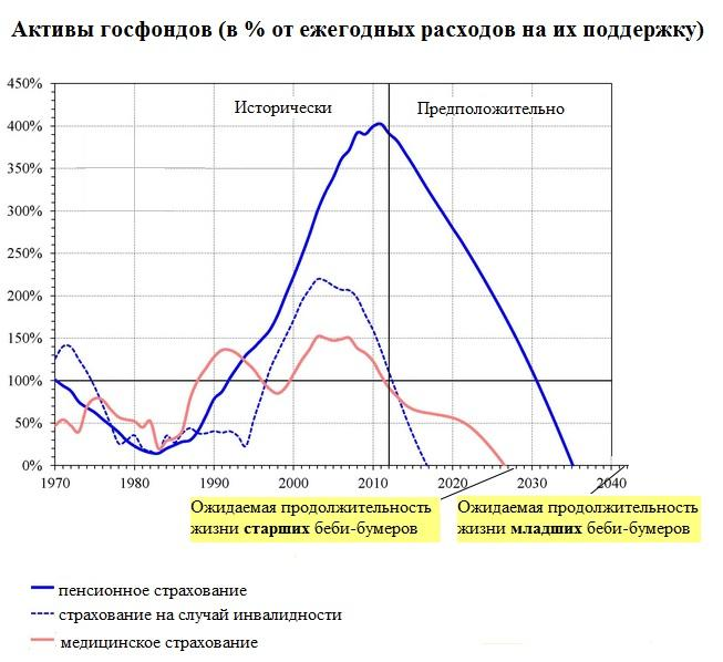 Старшие бэби-бумеры, скорее всего, смогут в полной мере воспользоваться всеми социальными благами: государственной пенсией, медицинской страховкой и страховкой от инвалидности. Но к тому времени, как младшие бумеры выйдут на пенсию, государственный фонды могут обанкротиться. Маловероятно, что федеральное правительство будет иметь достаточно ресурсов, чтобы предоставить новоиспеченным пенсионерам те же преимущества, что старшим бумерам.