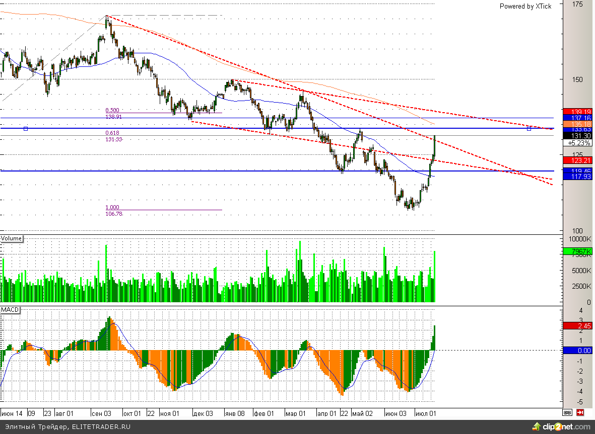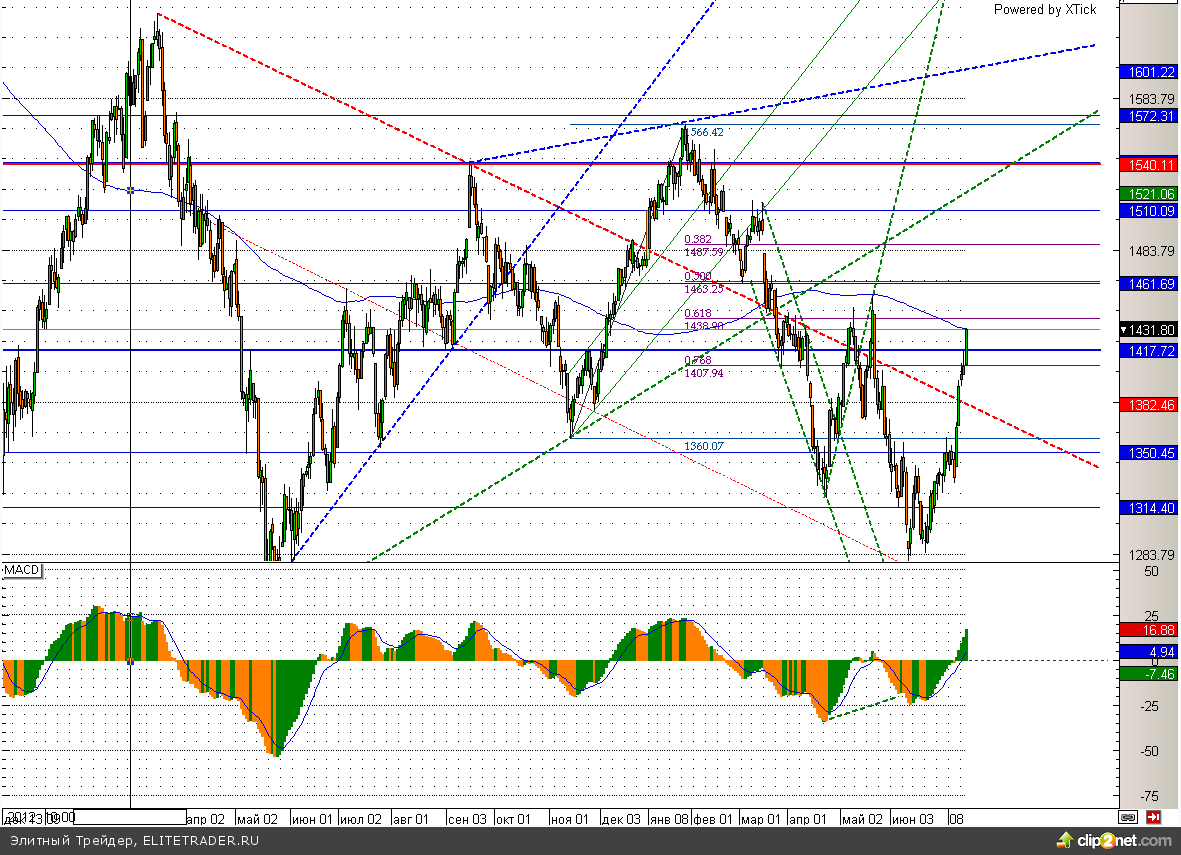 При этом «быкам» сегодня удалось отправить индекс ММВБ в район 1430, где проходит 200 дневная скользящая средняя. Теперь рост вполне может замедлиться, особенно учитывая эйфорию на российском фондовом рынке, которая в большинстве своем сменяется стремительной коррекцией.