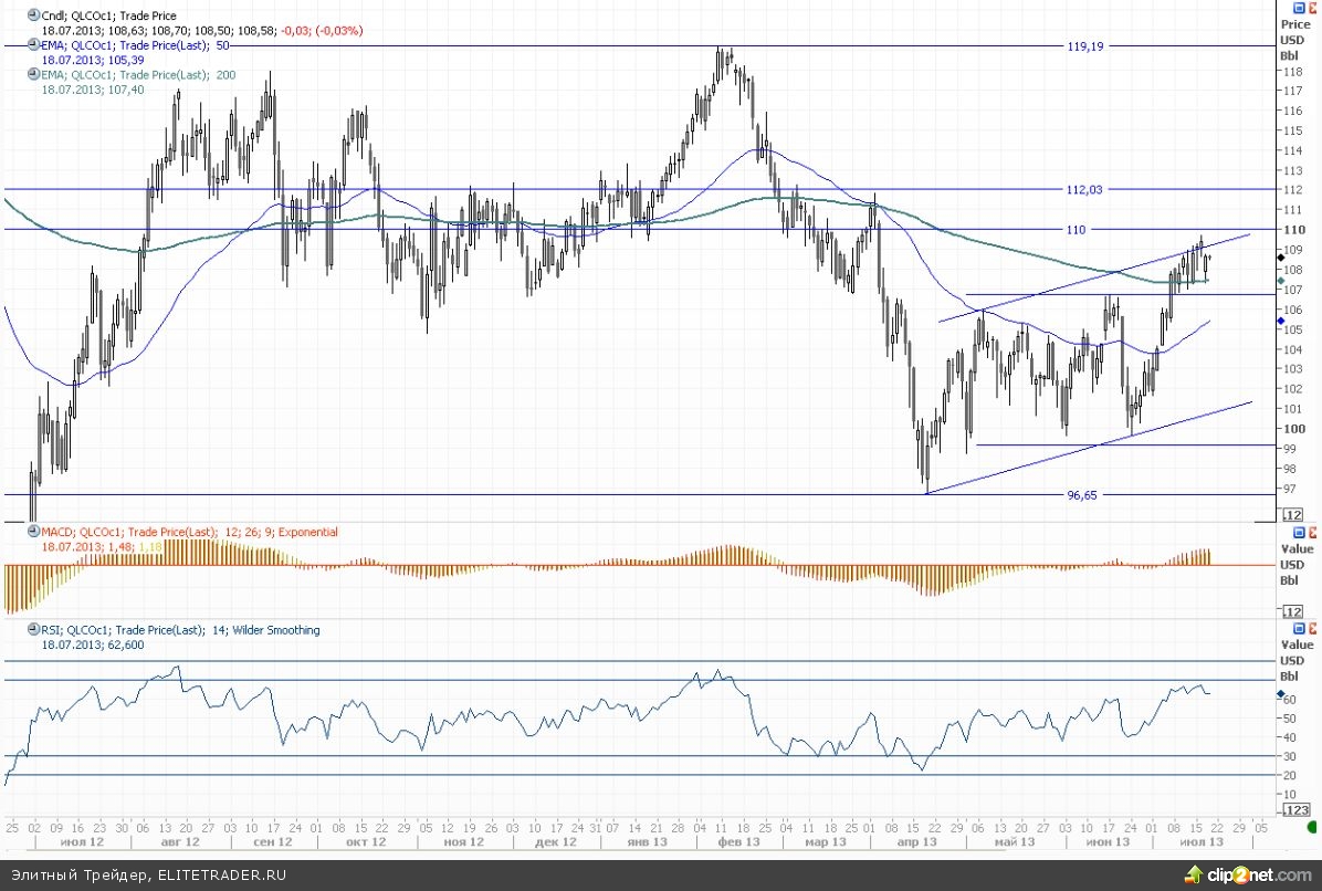 В среду общая ситуация на рынке черного золота изменилась несущественно. Мы лишь продолжили отрабатывать бычью технику и в очередной раз немного обновили локальные максимумы (если не брать в расчет недавно экспирировавшиеся августовские контракты). Сохраняем умеренно позитивный взгляд. Ближайшие целевые уровни сопротивления все также расположены на $110 и $112 за баррель.
