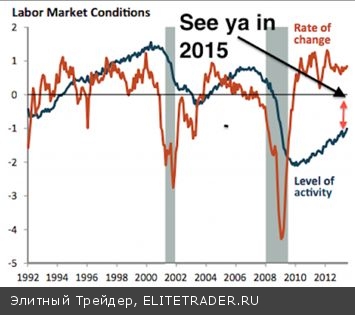 ФРС ждет восстановления рынка труда лишь к 2015 году. Федрезерв заявил, что не будет сокращать стимулирующую программу до тех пор, пока рынок труда США не восстановится. Крейг Хаккио и Джонатан Уиллис из ФРБ Канзаса попытались спрогнозировать динамику рынка труда с помощью двух индикаторов – «уровня активности» и «уровня изменчивости».