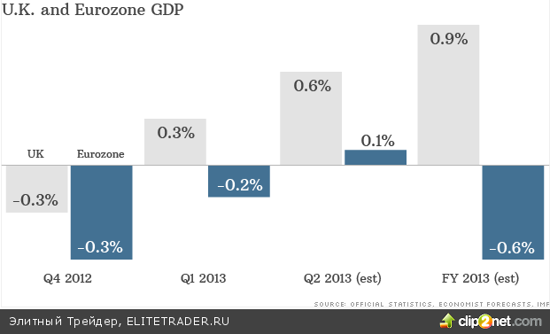 Между тем, МВФ повысил прогноз по росту экономики Великобритании в 2013 году до 0.9%, хотя на ситуацию в еврозоне регулятор смотрит негативно, ожидая еще большей рецессии. Аналитики также прогнозируют ускорение роста. «Рост потребительских расходов будет обусловлен комфортным положением домохозяйств», - отмечает Амит Кара из UBS, который прогнозирует рост ВВП страны на 1.1% в 2013 году. CNN