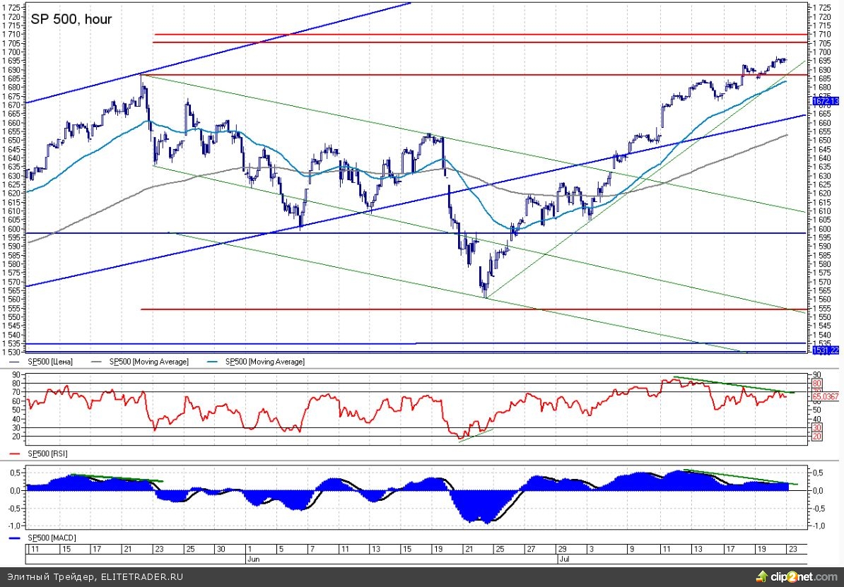 В данный момент фьючерсный контракт на SP500 торгуется с повышением на 0,28% около отметки 1695 п.