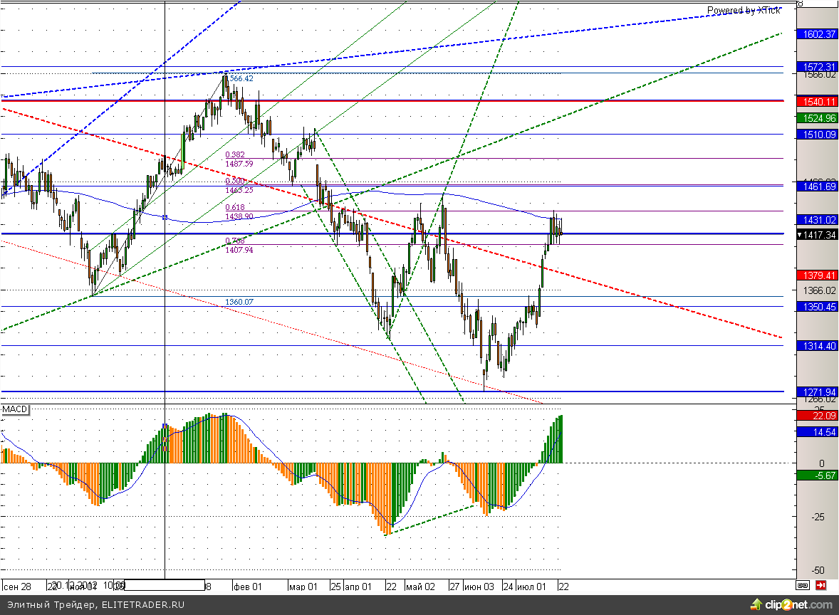 Российский рынок завершил торговую сессию вторника вблизи уровней закрытия понедельника. «Быки» сегодня отчаянно пытались вернуть фондовые активы к недавним максимумам, но впечатляющего роста не состоялось. Индекс ММВБ продолжает торговаться в боковом диапазоне между 1410 и 1430. Выход в любую сторону из данного боковика может привести к резкому движению. Впрочем, предпосылки для сильного движения пока отсутствуют.