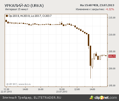 Акции Уралкалия сегодня в аутсайдерах рынка. К 15:44 мск бумага упала на 4,5%. В свою очередь индекс ММВБ торгуется в «зеленой зоне», прибавляя порядка 0,9%.