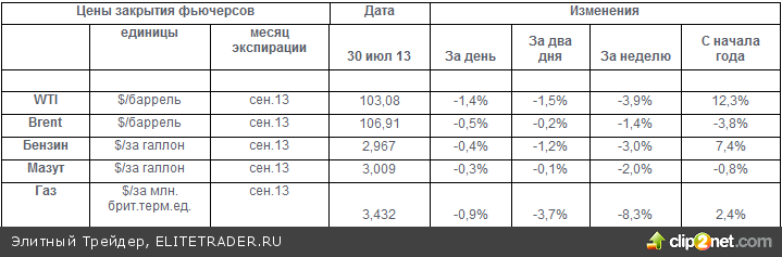 Цены на энергоносители в понедельник снижались по всему фронту. Особенно хорошо просели цены на нефть марки WTI. Цена черного золота за океаном продолжает снижаться, корректируя бурный рост предыдущего месяца. Цены дальних фьючерсов на нефть по обе стороны Атлантики по-прежнему оказываются ниже цен ближних контрактов. По европейской нефти марки Brent сохраняется беквордация и цены фьючерсов с погашением в декабре на 1,8% ниже цен сентябрьских фьючерсов. По нефти марки WTI беквордация составляет 2,8%. Превышение цен ближайших фьючерсов бочки нефти марки Brent и над ценами североамериканской легкой нефти марки WTI вновь немного подросло и на закрытие 30 июля составило 3,8 доллара за баррель.