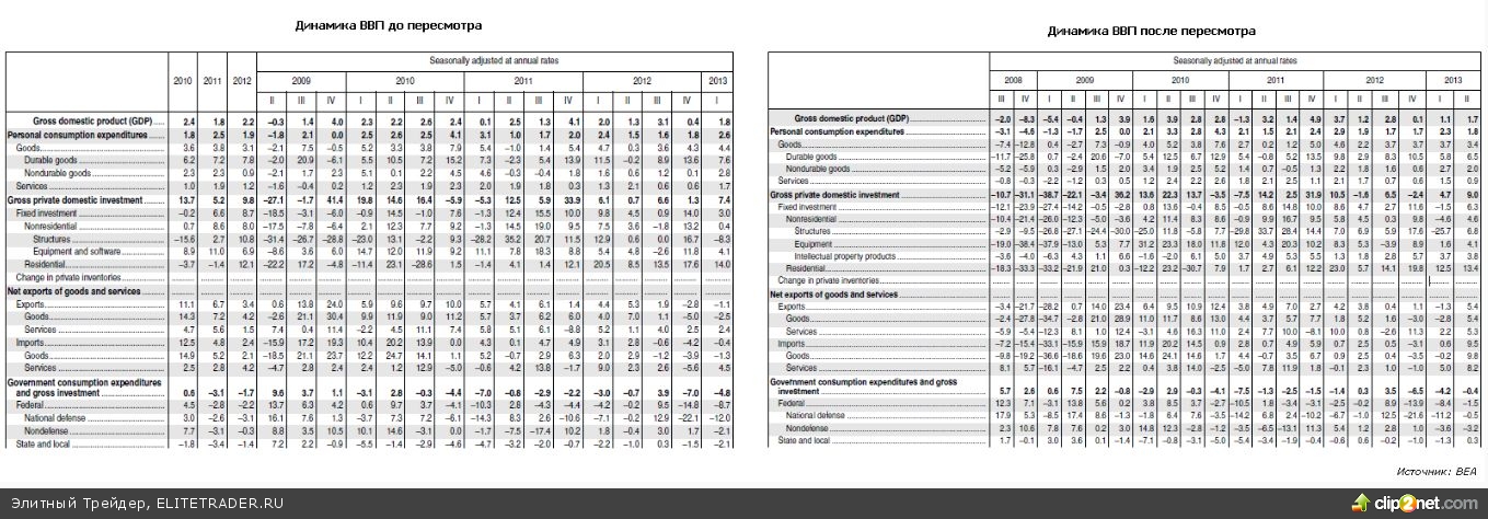 В целом пересмотр указал на ожидаемые улучшения в динамике показателя. Так для периода 1929-2012 гг., среднегодовой темп роста реального ВВП составил 3,3%, увеличившись на 0,1%. Для периода 2002-2012 гг. темп роста составил 1,8%, добавив 0,2% для каждого года.