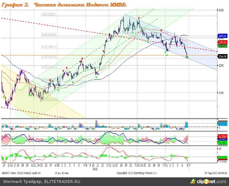 Индекс S&P 500 по итогам вчерашних торгов снизился на 0,57%. Фьючерсный контракт на индекс широкого рынка в настоящий момент дешевеет на 0,19%. Азиатские индексы преимущественно в минусе: NIKKEI сокращается на 1,92%, гонконгский Hang Seng проседает на 0,16%; Shanghai Composite прибавляет 0,34%; KOSPI уменьшается на 1,03%; австралийский S&P/ASX 200 падает на 1,31%, индийский SENSEX понижается на 0,14%. Индекс ММВБ в ходе торгов во вторник сократился на 1,95%, снизившись до отметки 1364,65 пункта. Полагаем, Индекс ММВБ будет сегодня торговаться в диапазоне 1360–1390 пунктов
