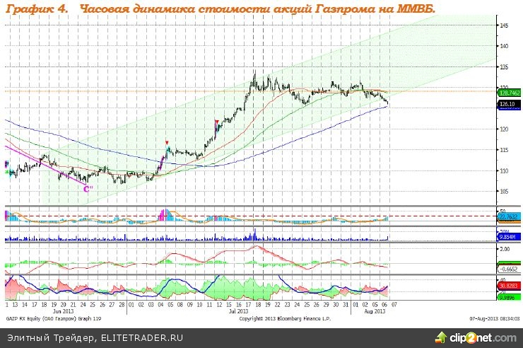 Сбербанк – «выпал» из восходящего канала. MACD сформировал сигнал вниз. ADX указывает на наличие нисходящего тренда. Индикатор, основанный на динамике ADX, 24 июля дал сигнал к росту. Поддержка: 94,00. Сопротивление: 98,00. Рекомендация: Вне рынка
