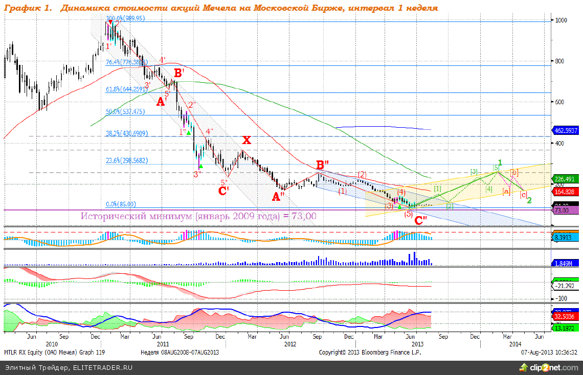 Рекомендуем: покупку акций «Мечела» по текущей цене (94,5 рубля) с целью продать на уровне 253,0 рубля (+167,72%), стоп-приказ на отметке 86,0 рубля (-8,99%), временная перспектива — 6 месяцев.