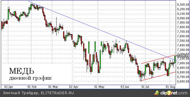На волне внешнего позитива, цене меди удалось сломать нисходящий тренд последних месяцев. И хоть до полноценного разворота еще далеко, высока вероятность, что ниже локальных минимумов цена металла уже не опуститься в ближайшей перспективе. В случае благоприятного развития ситуации, рынок может попробовать дотянуться до отметки $7500 за тонну уже этой осенью.