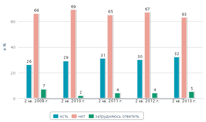 Треть населения (32%) страны копит деньги, выяснилось в ходе соцопроса, проведенного Всероссийским центром изучения общественного мнения (ВЦИОМ). Доля тех, кто имеет сбережения, остается стабильной два последних года, тогда как предыдущие четыре года о наличии накоплений говорили только 26%. Сейчас не имеют накоплений, по собственному признанию, 63% респондентов.