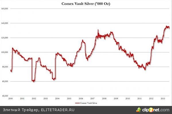 Биржи также не спешат расставаться с серебром. Резервы драгоценного металла на COMEX остаются стабильными, в то время как количество золота на ее складах сократилось с почти 3 млн унций в феврале до 817,5 тыс. унций в августе.