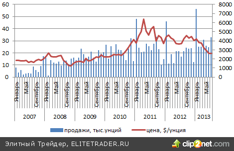 Источник: usmint.gov, Bloomberg, расчеты Инвесткафе.
