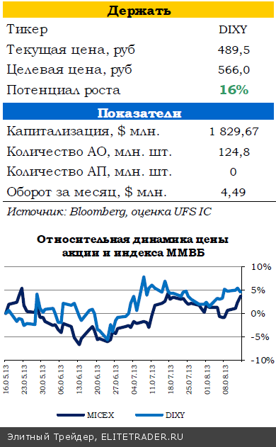 Мы нейтрально оцениваем данные по продажам, более интересными для рынка являются финансовые показатели за 1П13, которые компания должна опубликовать в начале сентября. Если Дикси сумеет продемонстрировать дальнейшее улучшение показателей рентабельности, это может оказать хорошую поддержку котировкам