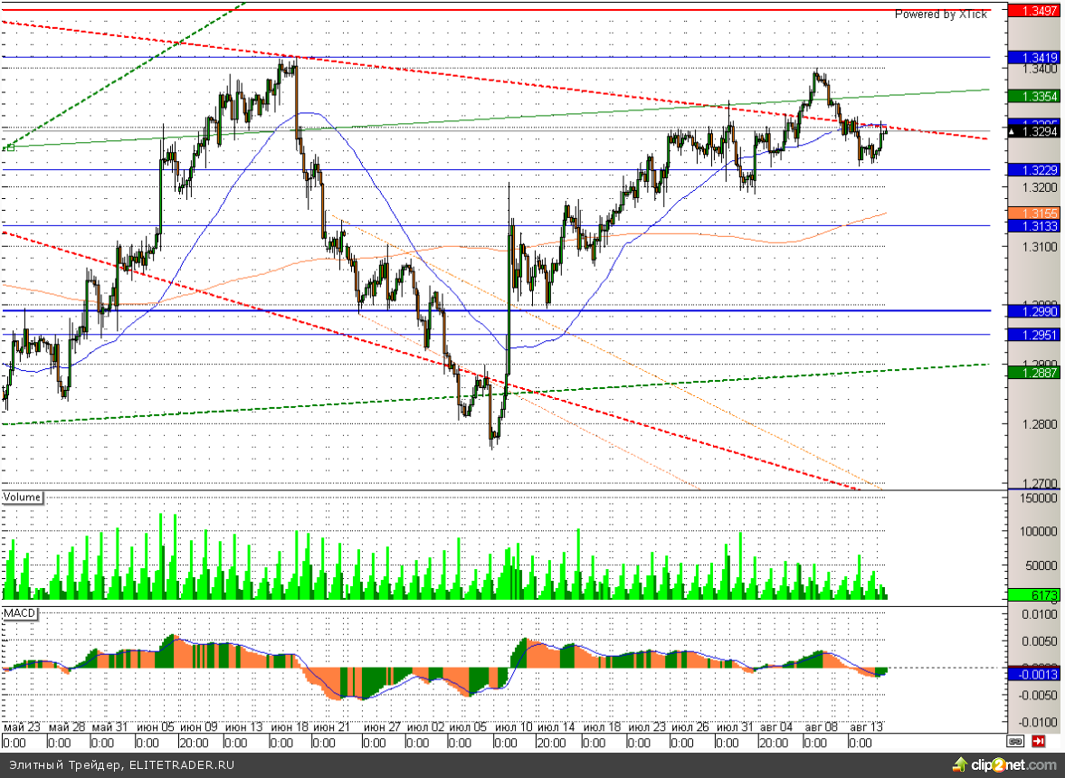 Рубль прибавляет к доллару более 10 копеек. Доллар накануне пытался уйти выше 33,1 по отношению к рублю, но данная попытка закончилась полным провалом. Значительную поддержку российской валюте оказывает растущая нефть. Сегодня котировки сорта Brent торгуются уже выше 111 долларов за баррель из-за напряженности в Египте, а также снижения запасов в американских нефтехранилищах на 2,81 млн баррелей за прошедшую неделю по данным Министерства энергетики США. Между тем приближение налогового период в стране и увеличение интервенций российским ЦБ также добавляют позитива рублю. Накануне Банк России продал иностранной валюты на 10,79 млрд рублей. Поэтому, покупка доллара по отношению к рублю, как я уже писал ранее, сейчас сопряжена с определенными рисками, и лучше действовать в точности наоборот. Первой целью роста российской валюты может стать уровень 32,75.