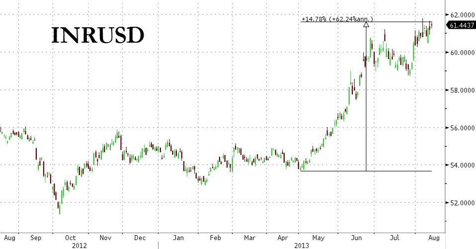 С тех пор как ФРС начала говорить о постепенном сокращении количественного смягчения, рупия подешевела на почти 15% за 3 месяца…