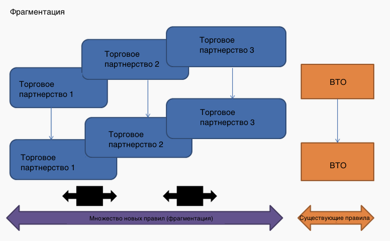 Если гармонизации не случится, то правила в подобных партнерствах не смогут стать основой для системы международного регулирования в рамках ВТО. Они так и останутся набором двусторонних и многосторонних договоренностей.
