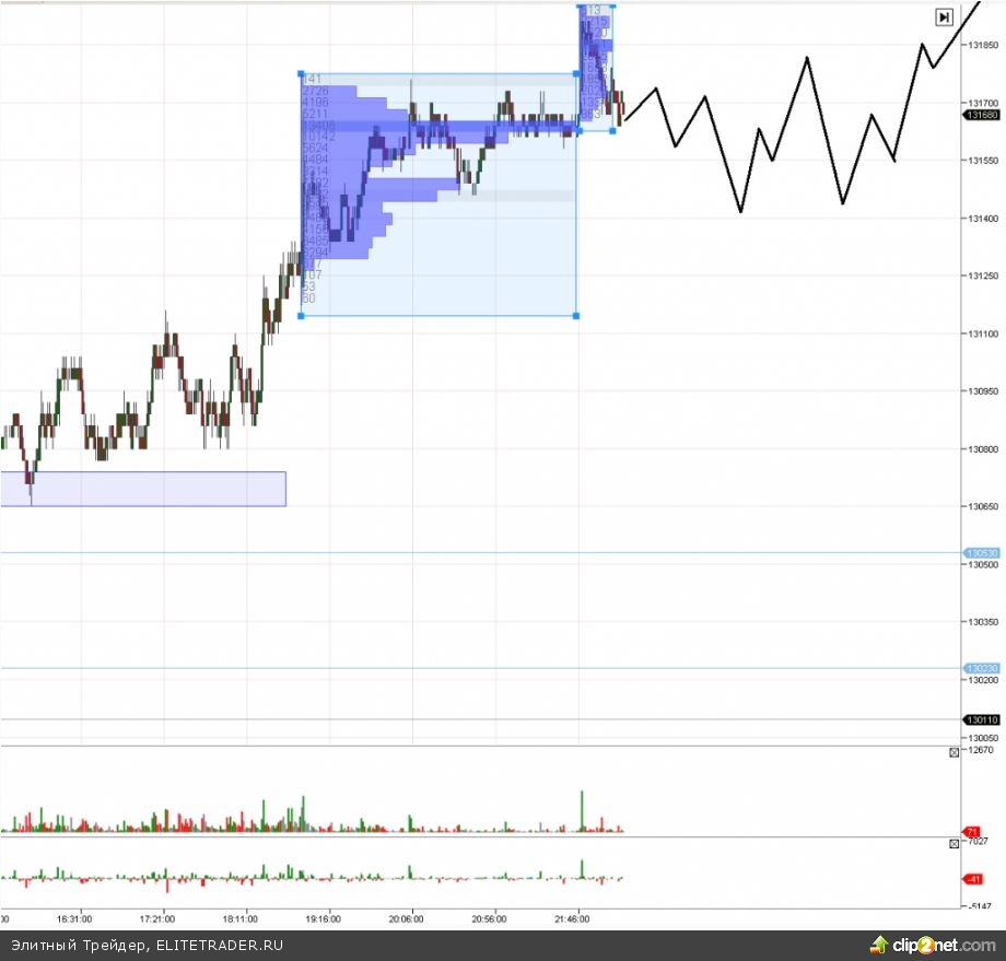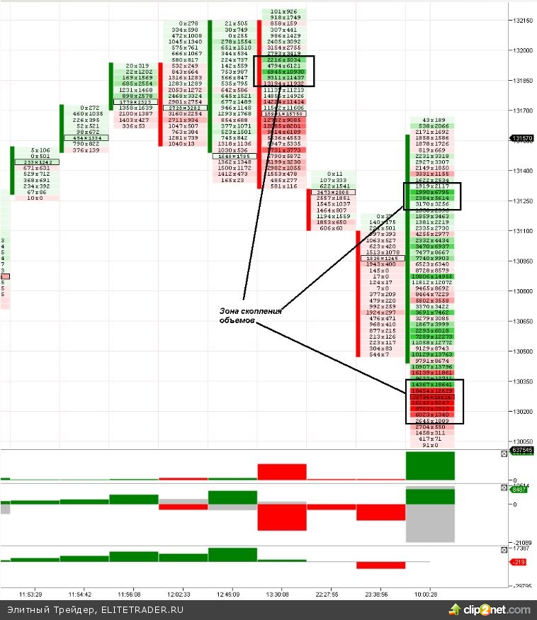 В завершение приведу зону скопления объемов, утром она была серьезнее, чем вчерашняя в районе 131 800 пунктов: