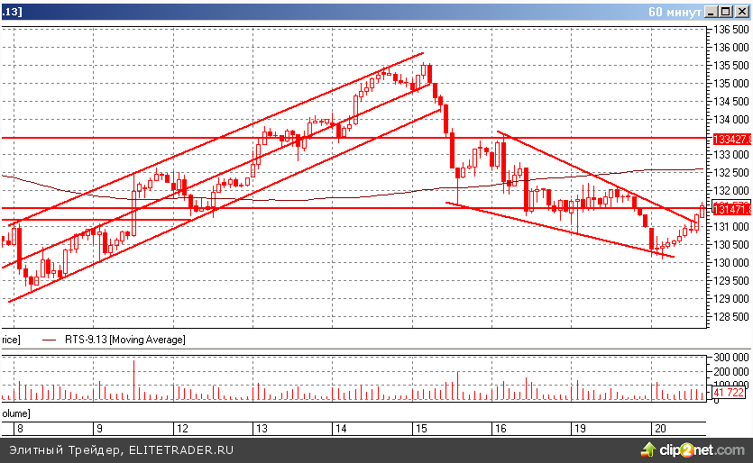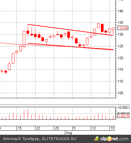 Во фьючерсе на индекс РТС сегодня так активно бились в 131 000 пунктов, под конец дня выскочили выше. Поэтому для краткосрочных спекуляций, наверное, откат к 131 000 пунктам лучше всего использовать для входа в лонг с целью 132 500 пунктов. Конечно, если дадут такой «глубокий» откат на таком «волатильном» рынке.