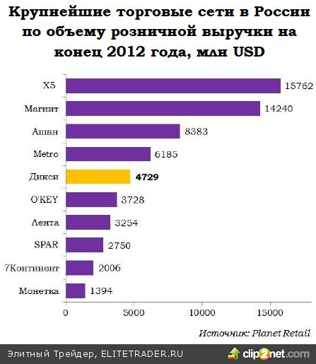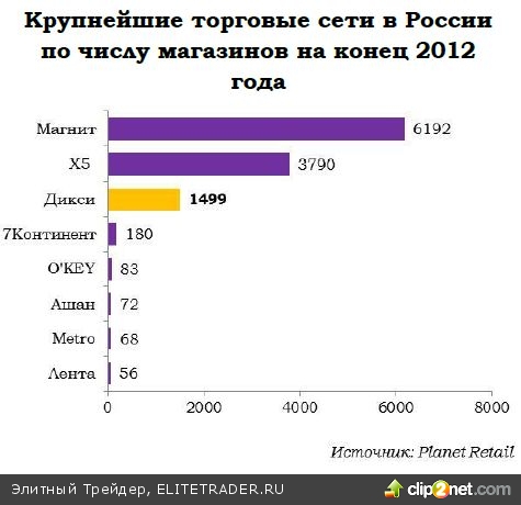 Объединение сетей позволило Дикси плотно закрепиться на 5-м месте, вплотную приблизившись к сети «Metro», а в своем формате уверенно заняв третье место после Магнита и Х5.