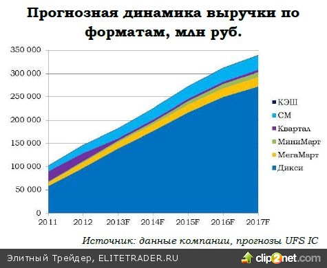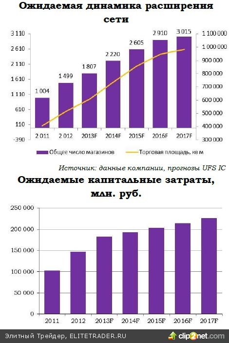 Это будет нетрудно сделать при текущих темпах роста, так как ближайшие конкуренты – Metro и Ашан – представлены в очень ограниченном списке форматов (Cash&carry и гипермаркет, соответственно), исключительно в крупных городах, и возможности для роста в рамках данных форматов у них сильно ограничены.
