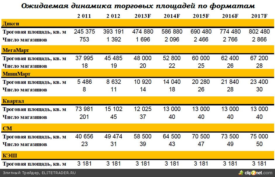 Мы придерживаемся довольно консервативных оценок и ожидаем, что торговая площадь в текущем году вырастет приблизительно на 18%, и более чем на 20% в 2014 году. Среднегодовой темп роста за 5 лет составит приблизительно 14%.