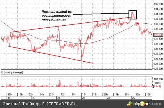 Сегодня утром состоялся ложный выход из расширяюшегося треугольника с быстрым возвратом в него: