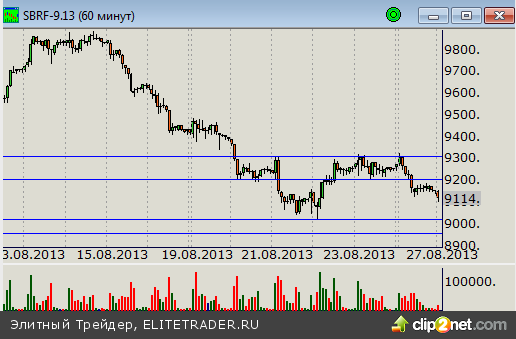 Отметка 9300 пунктов осталась за продавцами. После поражения покупателей котировки возобновили снижение. При этом цены пробили уровень локальной поддержки - отметку 9200 пунктов. Таким образом, сложились предпосылки к новому тестированию нижней границы широкого боковика, расположенной на уровнях 9000-8950 пунктов.