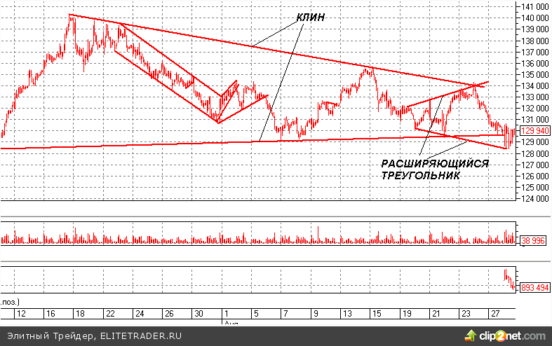 Предположу, что именно сегодня формировалась медвежья ловушка во фьючерсе на индекс РТС. При этом, чтобы не быть заплеванным, скажу медведям следующую вещь: расширяющийся треугольник можно будет расширять еще несколько дней, если у вас хватит на то силы. Во многом, это будет зависеть от внешнего фона. Это может быть и 127 500 и 126 500 и 125 500 пунктов. Однако до квартальной экспирации маятник обязательно качнется назад и мы увидимся выше 135 000 пунктов. Это факт.
