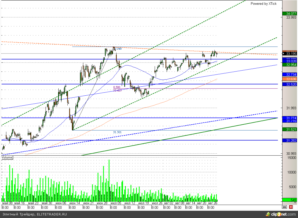 Рубль прибавляет к доллару символические 3 копейки. Российская валюта накануне вновь отскочила от уровня 33,3, где проходит одна из границ диапазона, в котором пара находится вот уже более месяца. Пробить данную отметку пока не удается в основном благодаря интервенциям Банка России, который вчера продал иностранной валюты на общую сумму 13,27 млрд рублей. При этом высокие цены на нефть являются дополнительным позитивом для рубля.