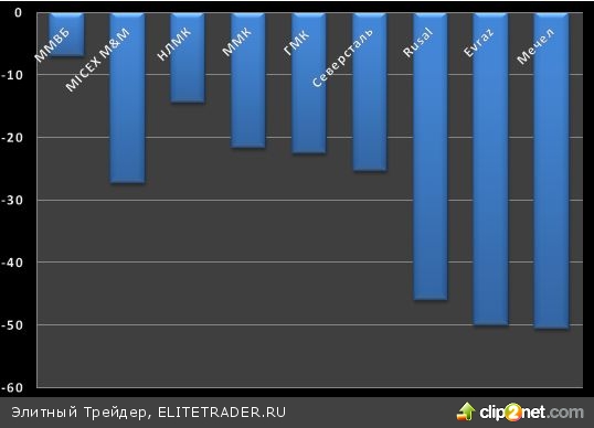 В целом, металлурги в этом году в аутсайдерах. Сектор с начала года просел почти на 30%. При этом индекс ММВБ упал примерно на 7%. Наибольшие потери понесли бумаги Evraz и Мечела – подешевели вдвое; РДР Русала упали на 46%, бумаги Сверстали потеряли четверть.