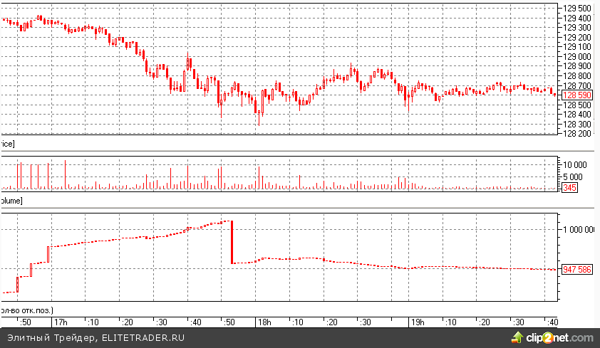 (крупные точечные объемы переброшены через стакан в районе 129 320-129 360 пунктов):