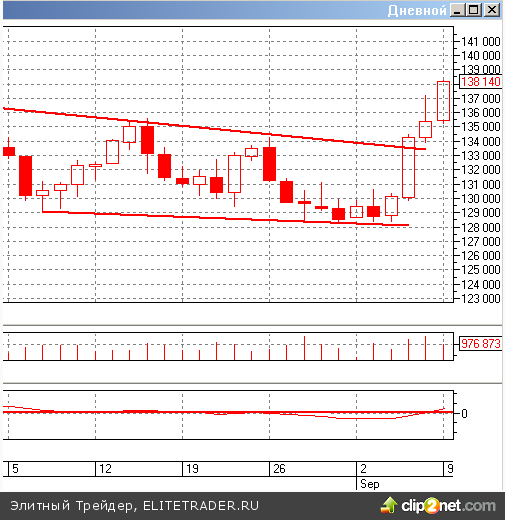 Основная торговая идея с позиции теханализа — пробой клина, который формировался все лето.