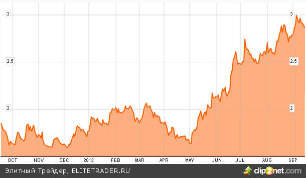График доходности 10-летних трежерис США за 2013 год