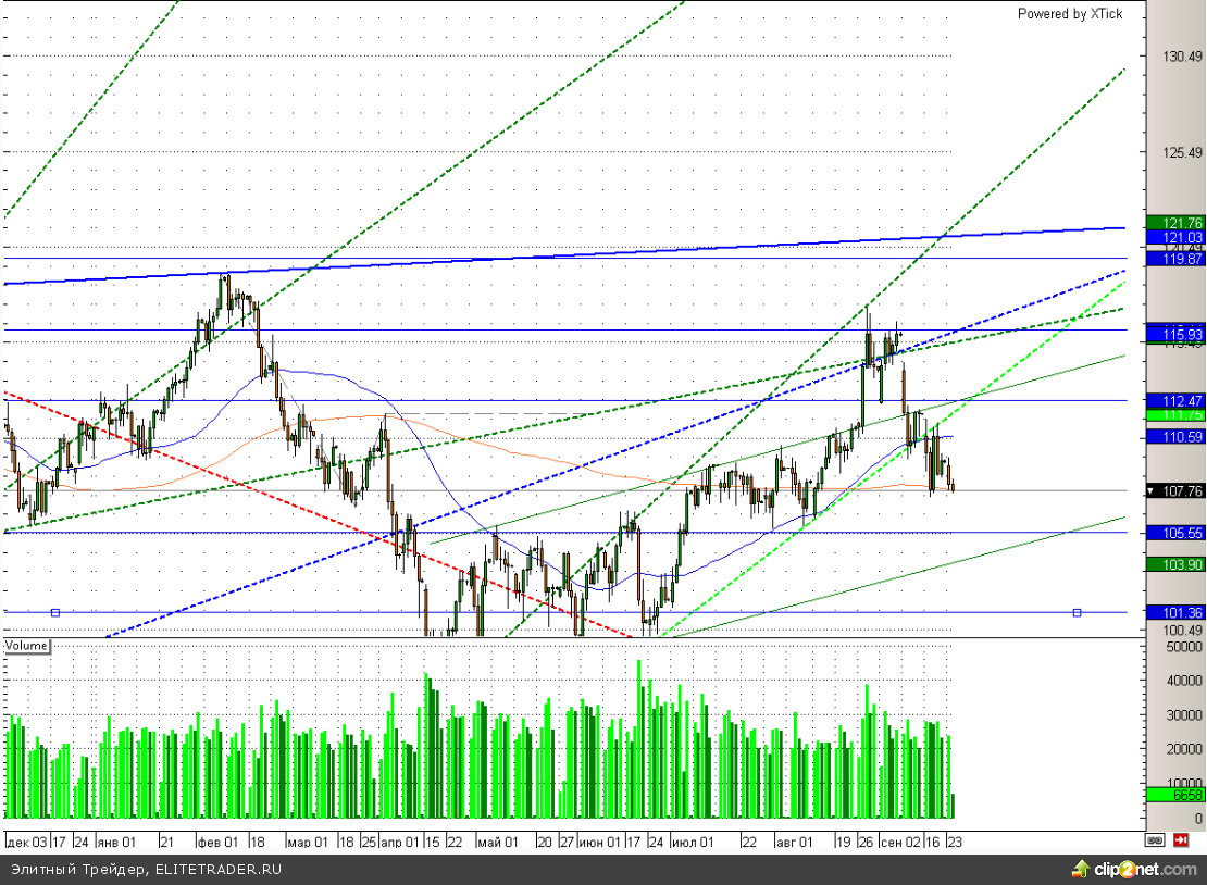 В свою очередь нефть сорта Brent сейчас торгуется около очень важного уровня 107,5. Здесь проходит 200-дневная скользящая средняя пробой, которой может увести «черное золото» в район 105,5 долларов за баррель. Впрочем, в текущий момент вероятность незначительного рост все-таки немного выше.