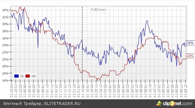 Напомню, подразумеваемая волатильность устанавливается самими участники торгов и обычно классифицируется как индикатор страха.