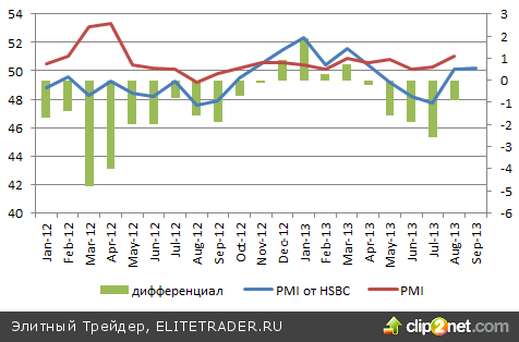 Не следует преувеличивать влияние выхода более слабого индекса PMI в производственной сфере Китая от HSBC за сентябрь. Несмотря на пересмотр показателя в сторону понижения, он по-прежнему находится выше ключевой отметки в 50, что позволяет прогнозировать продолжение позитивной динамики деловой активности в Поднебесной.