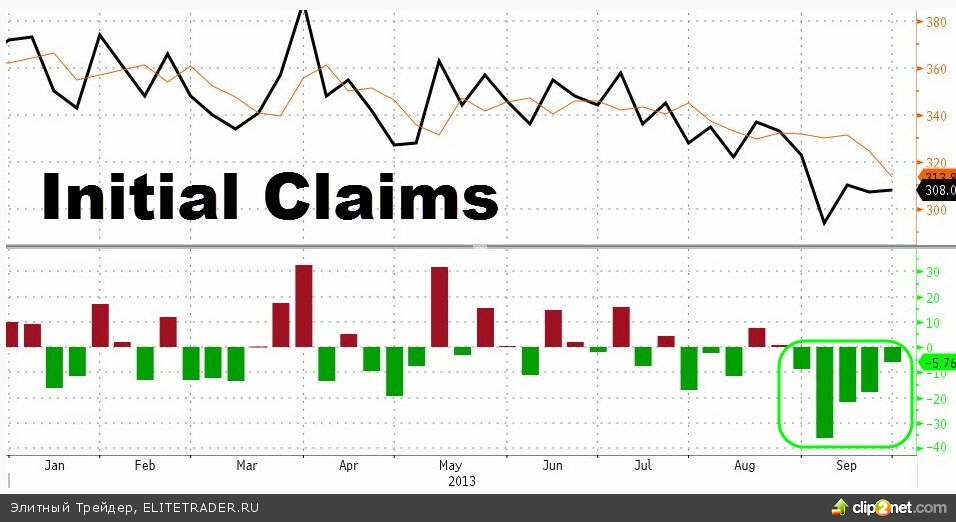 Несмотря на вынужденный отпуск многих госслужащих, сегодня все же была выпущена статистика по первичным заявкам по безработице – показатель составил 308 тысяч против ожидаемых 315 тысяч, это немногим больше чем 307 тысяч на прошлой неделе. Между прочим, другой показатель – число получающих пособия вырос до максимума за 3 месяца и составил 2.92 млн человек.