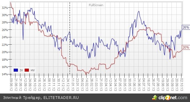 Напомню, подразумеваемая волатильность устанавливается самими участники торгов и обычно классифицируется как индикатор страха.