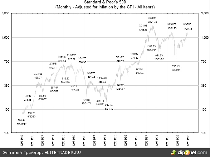 Графики S&P 500 с корректировкой на инфляцию за период 1949-2013 гг