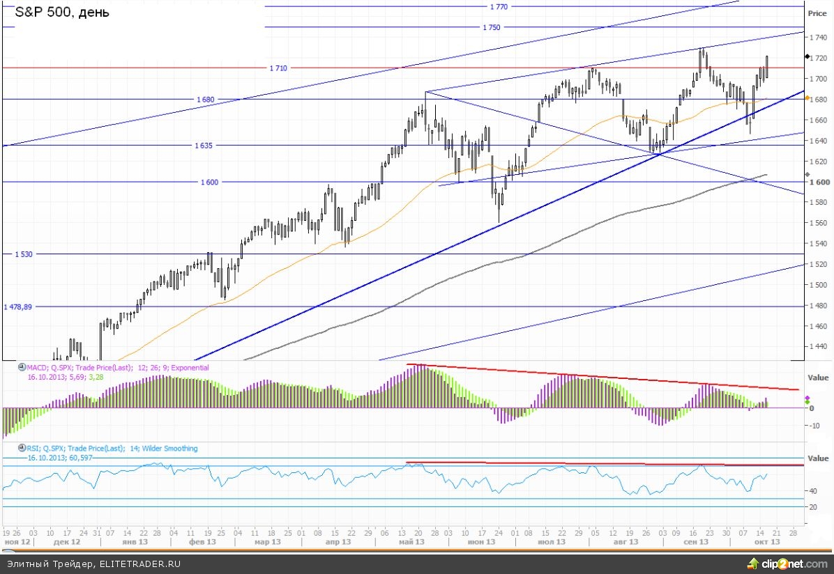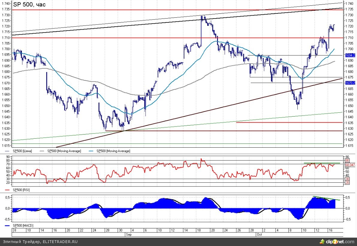 В данный момент фьючерсный контракт на SP500 торгуется с понижением на 0,06% около отметки 1712п.