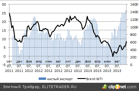 Для начала необходимо вспомнить о главных драйверах изменения спреда двумя популярными сортами нефти. К ним традиционно относятся политическая нестабильность на Ближнем Востоке, увеличивающая риск сокращения поставок Brent; изменения запасов сырой нефти в США; логистические проблемы на терминале в Кушинге, ограничивающие круг потенциальных покупателей WTI; уменьшение объема добычи в Северном море; рост добычи черного золота в Штатах. Я бы добавил динамику спроса со стороны Китая, а также спекулятивный фактор.