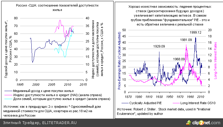 В.Путин в статье, посвященной социальным вопросам, пообещал к 2020 году решить проблему доступности жилья для 60% населения против нынешней примерно четверти. Если тут имелась в виду доступность покупки жилья с ипотечным плечом (из расчета 18 м2 на члена семьи, притом, что фактическая обеспеченность сегодня приблизилась к 23, но в городских квартирах 18 - это и есть примерно средний уровень), то, по моим оценкам, это сегодня примерно так и есть. Правда, при условиях кредитования, принятых в расчетах доступности жилья в США – на 30 лет при первоначальном взносе 20% (обслуживание и погашение кредита при этом не должно отнимать более четверти дохода), хотя для нас они не являются стандартными.