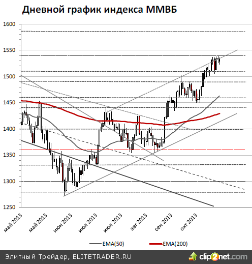 Российский рынок вчера вечером практически не смог воспользоваться улучшением внешней конъюнктуры, а к настоящему моменту локальная эйфория от вчерашних американских данных на внешних рынках уже рассеялась, так что сегодня индекс ММВБ продолжит искать выход вниз с текущих уровней, ближайшая цель 1520 пунктов.