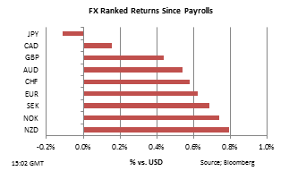 USD: Снижение доллара после выхода данных по занятости было довольно устойчивым, осси был главным исключением. Индекс доллара вернулся к уровням, которые последний раз фиксировались в начале января.